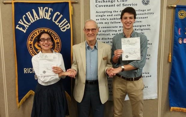 For over 30 years, the Exchange Club of Richmond Hill has presented Students of the Month awards to outstanding seniors at Richmond Hill High School. Pictured is club President Bob Mock with the January winner Braden Chapman and the February winner Irari Medrano. The award is presented for the months of September through April of each year, based on academic performance, community involvement, leadership, and all-around excellence. Each monthly winner is presented a check for $100. In May of each year, our Student of the Year is announced from among the monthly winners, with the presentation of a plaque and a check for $1,000 to the winning student during RHHS Honors Night.